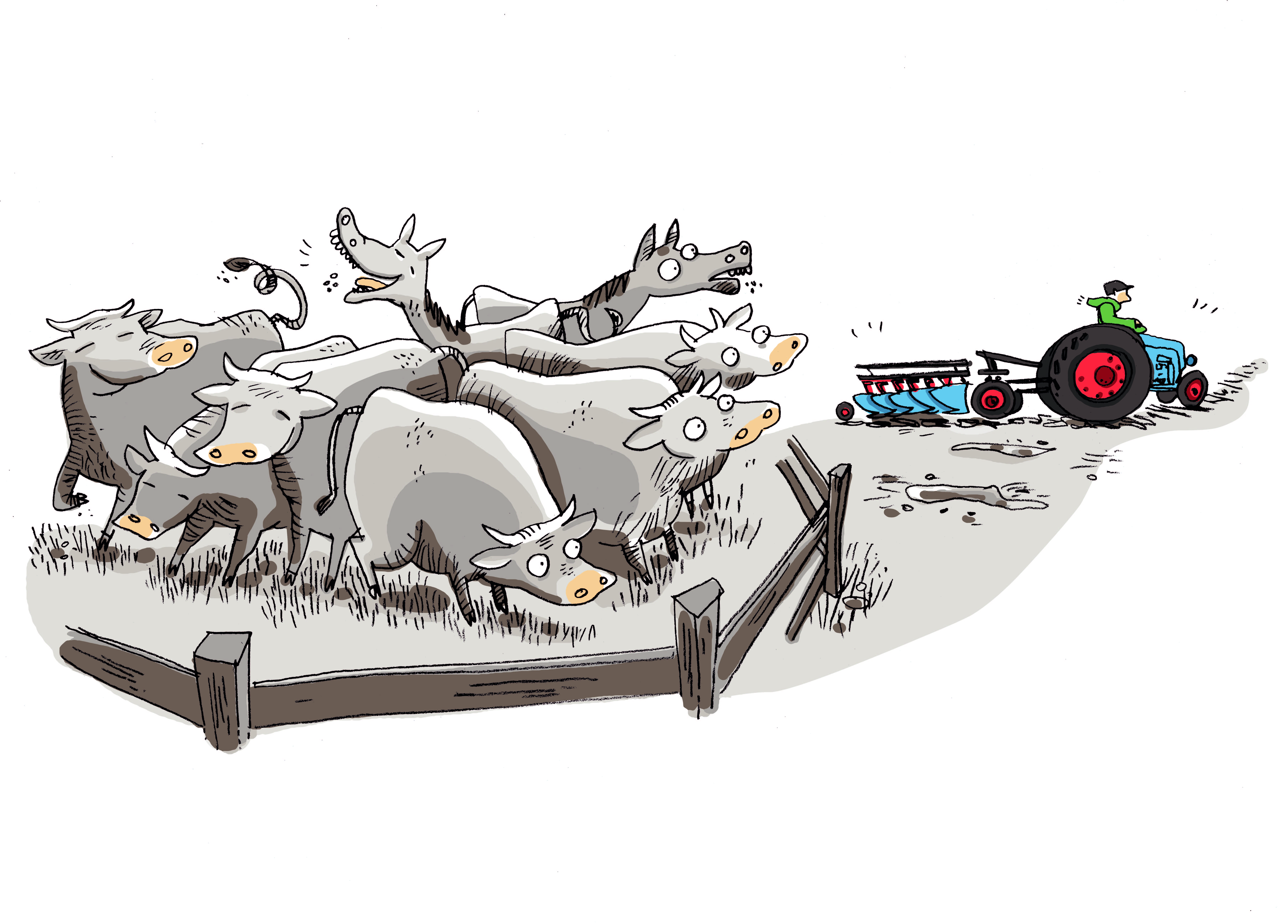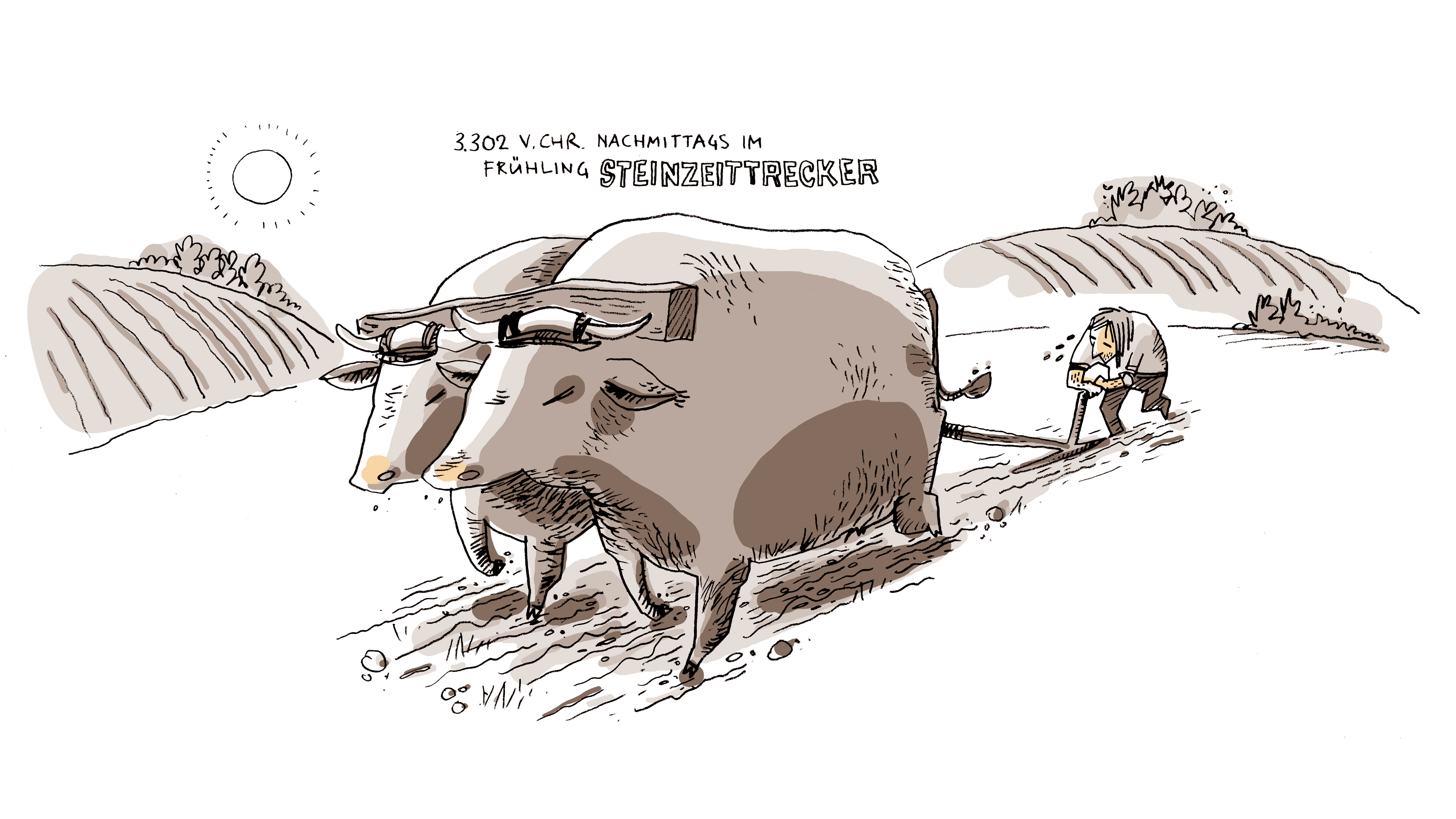 Illustrations XXL racontant l'histoire des tracteurs Lanz Bulldog pour ce musée d'archéologie allemand Arche Nebra.