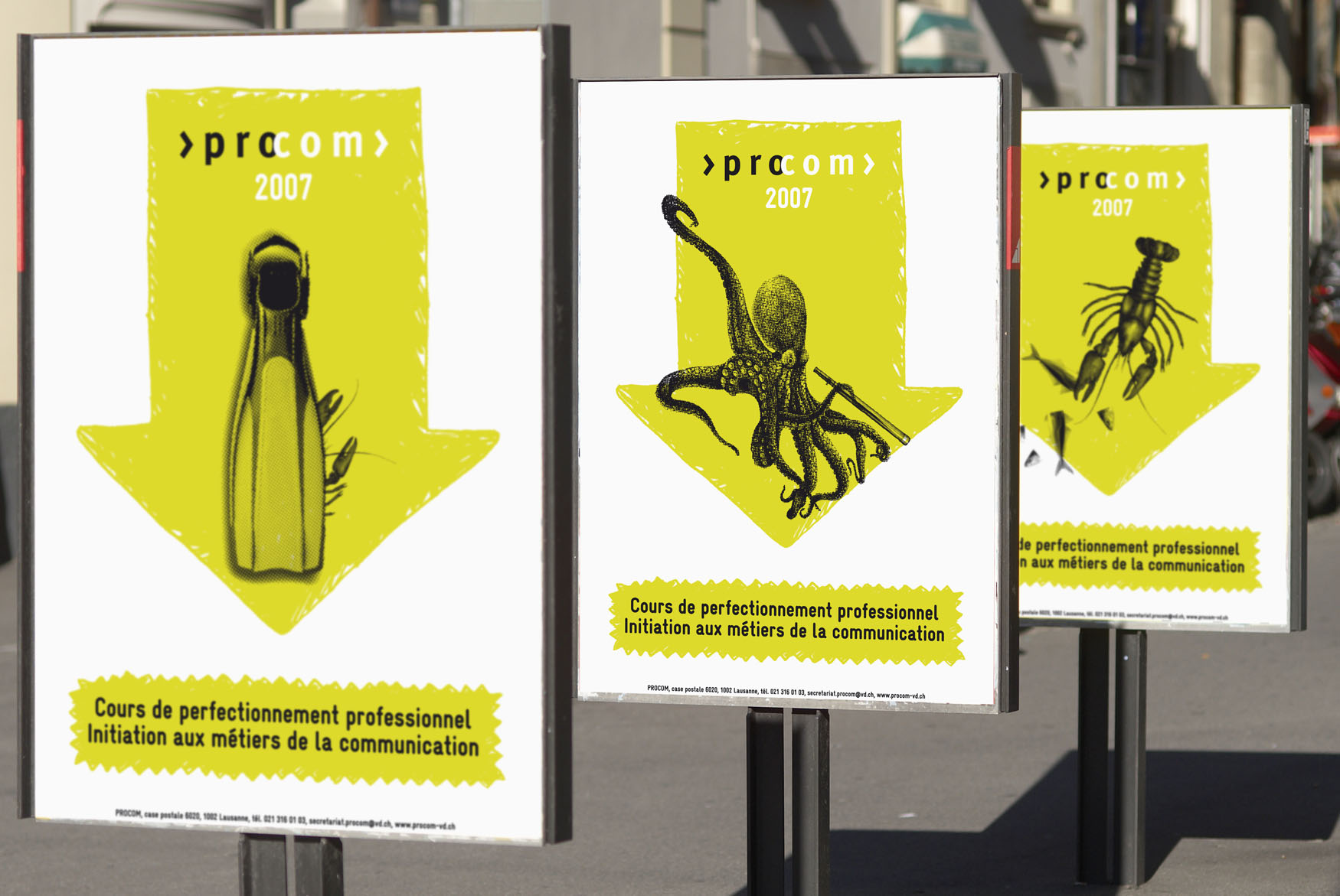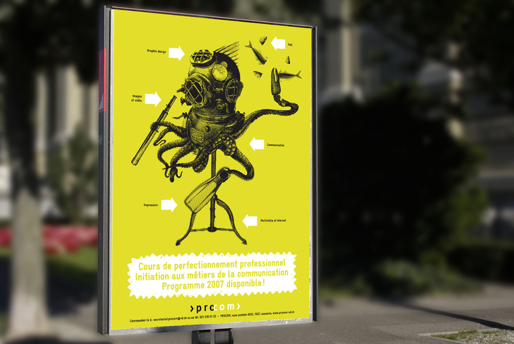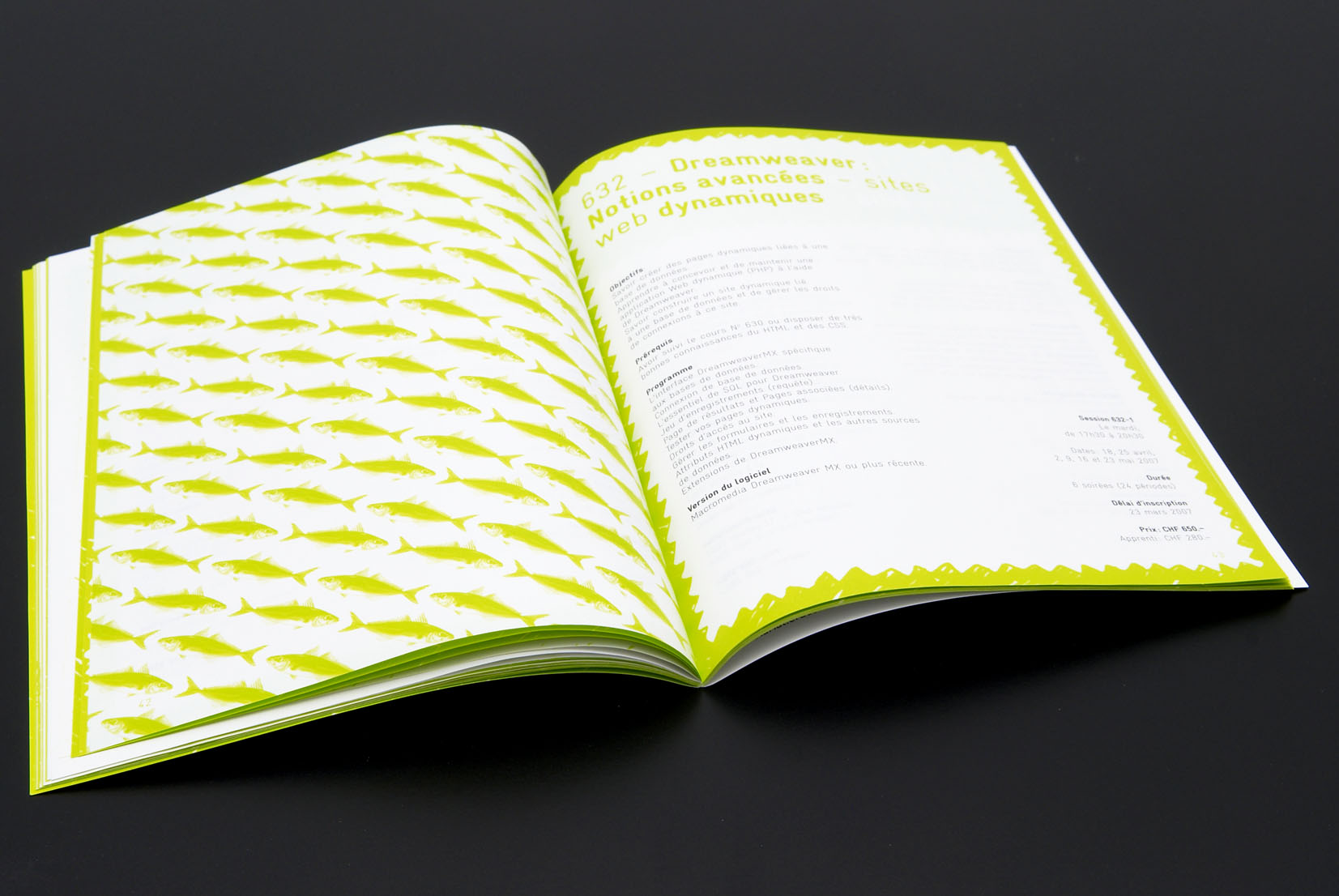 Concept graphique pour une institution de formation continue et de perfectionnement professionnel proposant des cours dans les métiers d’arts et l’industrie graphique.