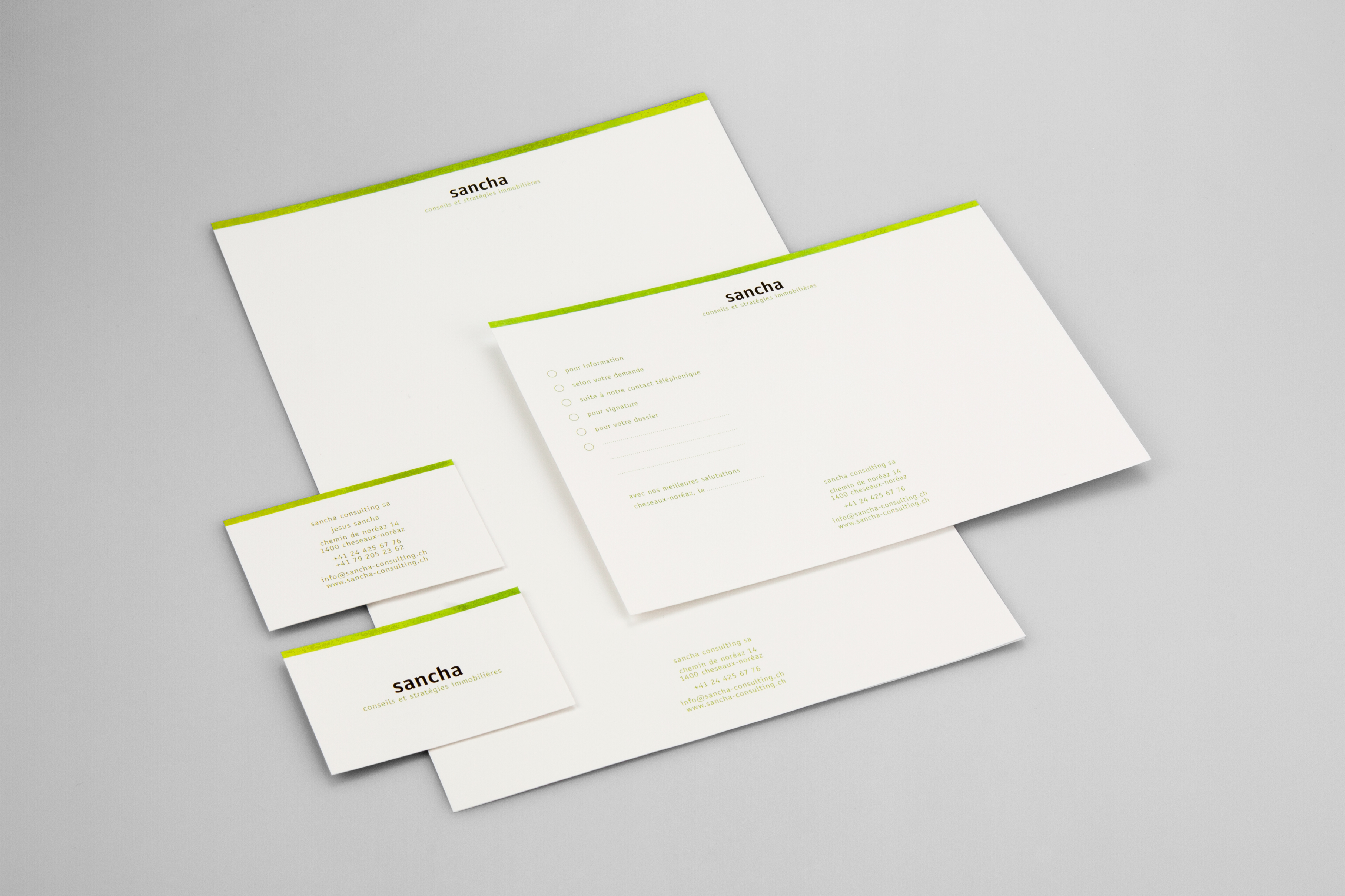 Identité pour la société de conseils et stratégies immobilières Sancha Consulting.