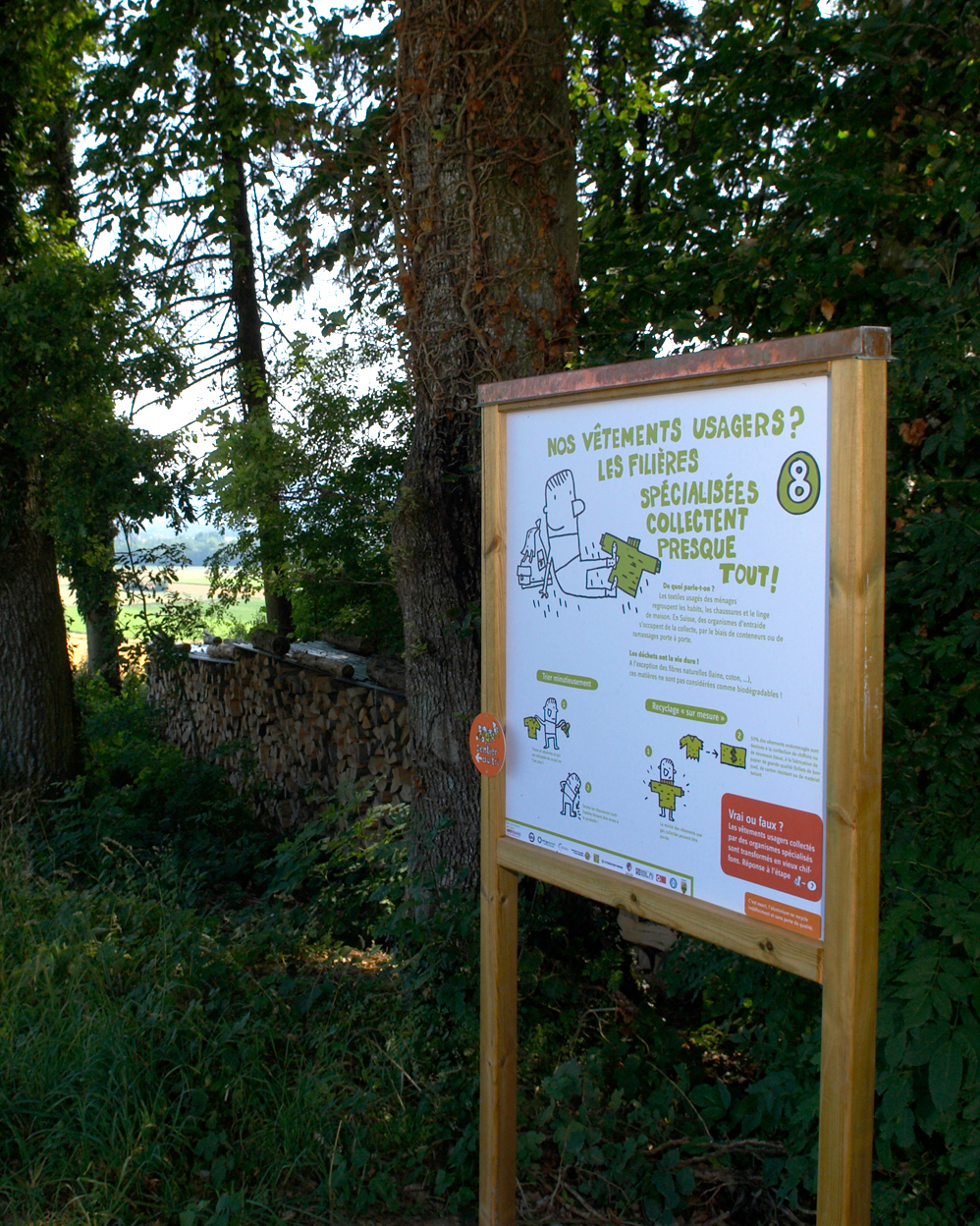 Réalisation de 17 panneaux didactiques sur le tri et les déchets. Le sentier de 14km à Yvonnand est accessible à tous·tes, à pied ou à vélo.