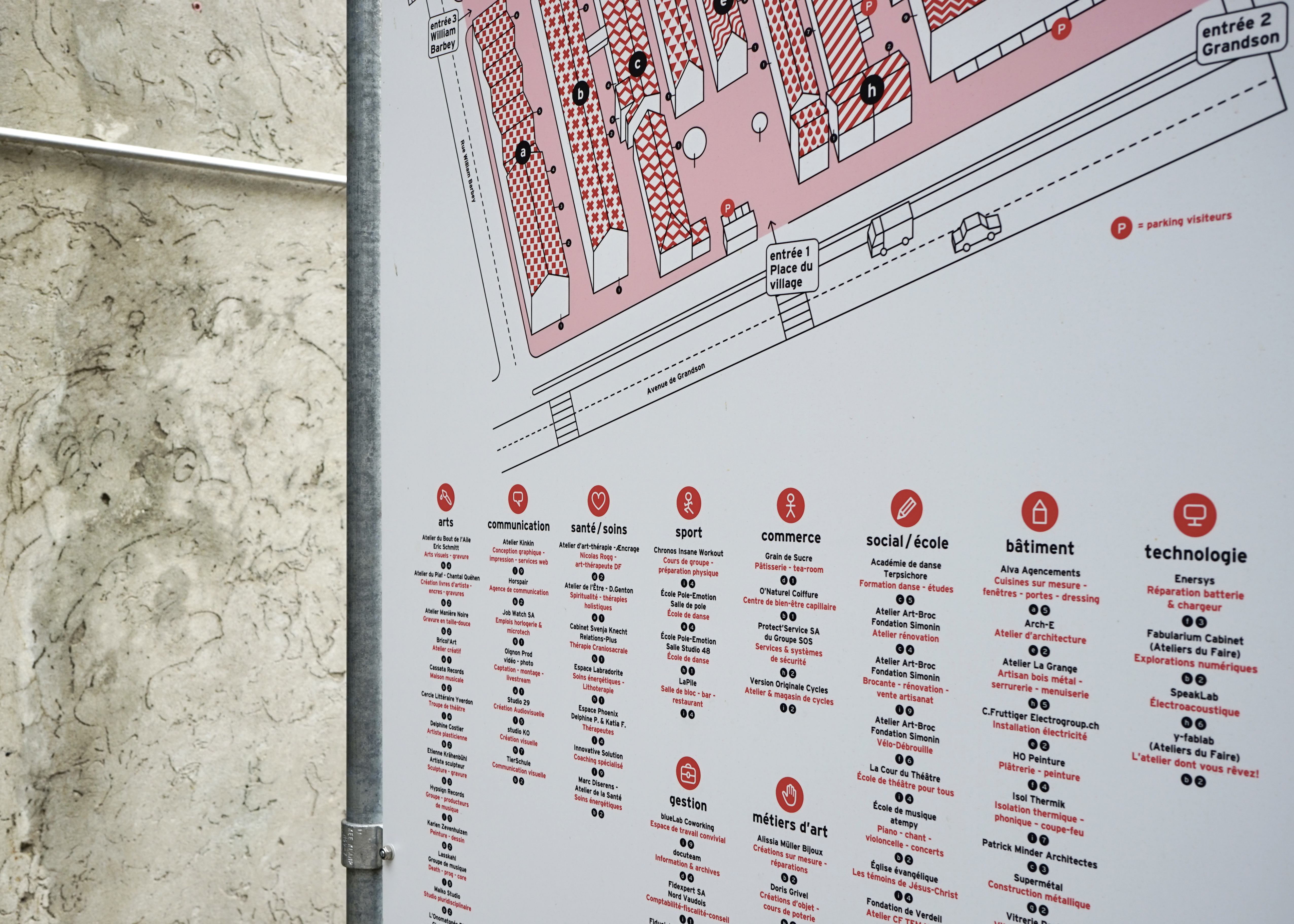 Pois, rayures, gouttes, carrés... Les trames servent de guide à l’intérieur du site industriel Village 48 à Yverdon-les-Bains, sur lequel plus de 70 entreprises diverses et variées sont réunies.