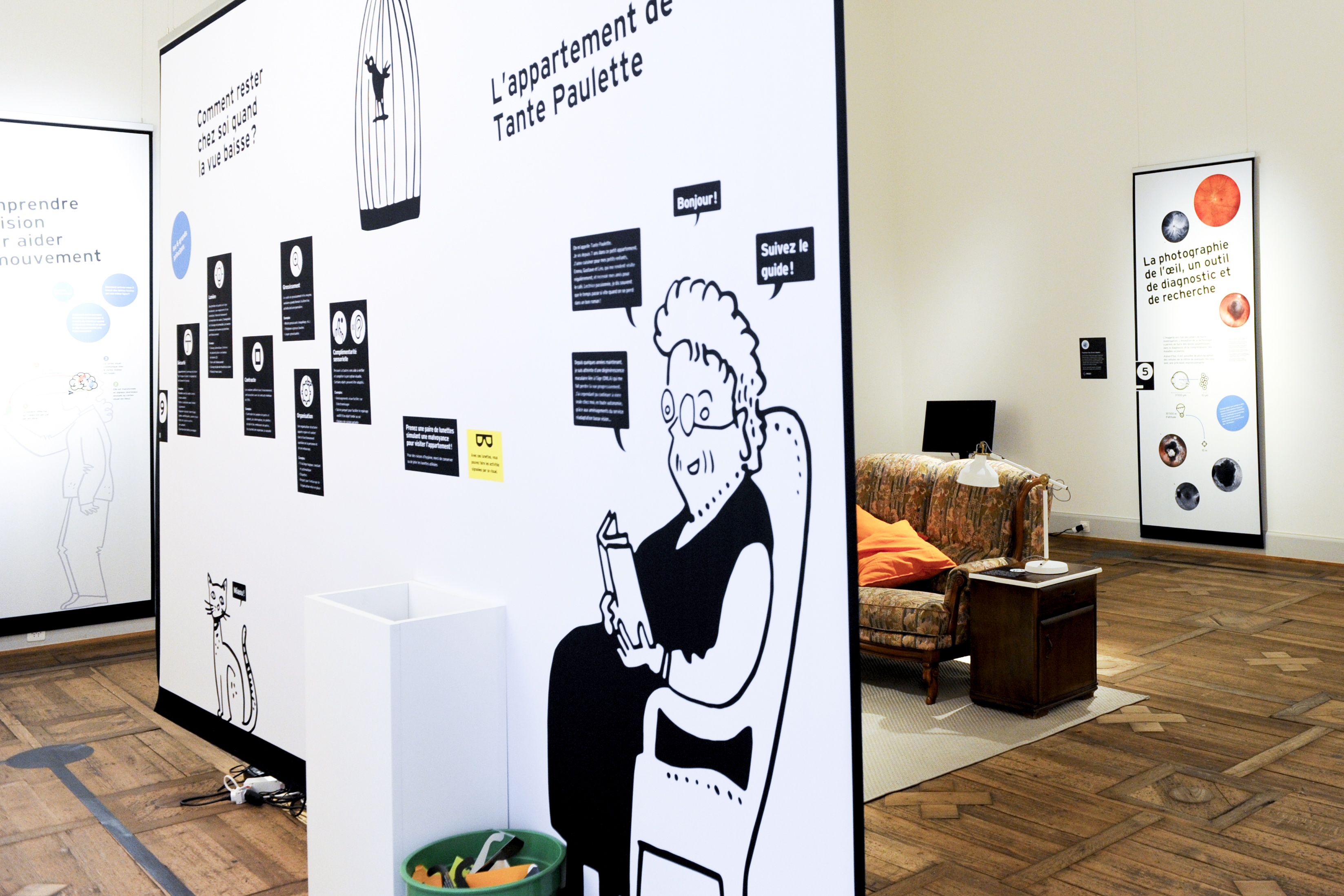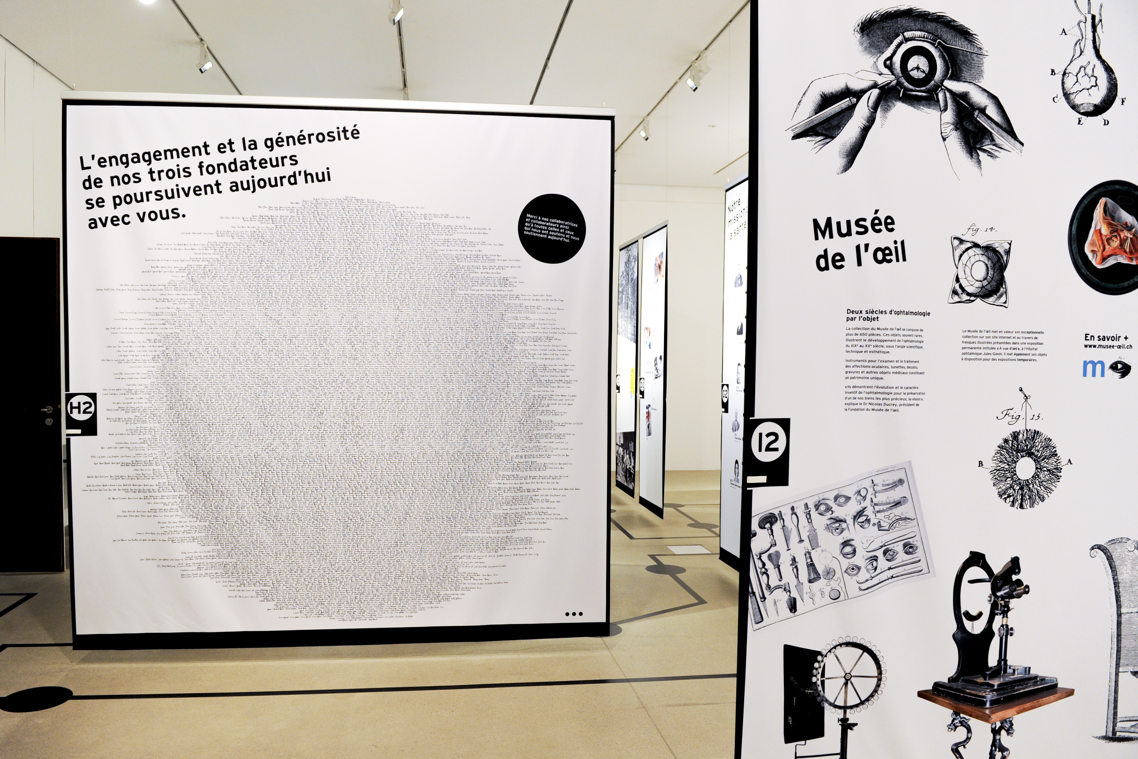 Vision[s]Pour ses 175 ans, la Fondation Asile des Aveugles présente une exposition interactive adaptée aux personnes mal voyantes: cadre noir, dessins contrastés, marquage au sol. L'histoire de l'hôpital ophtalmique y est présentée, les innovations les plus récentes ainsi que des expériences ludiques sur la vision.
