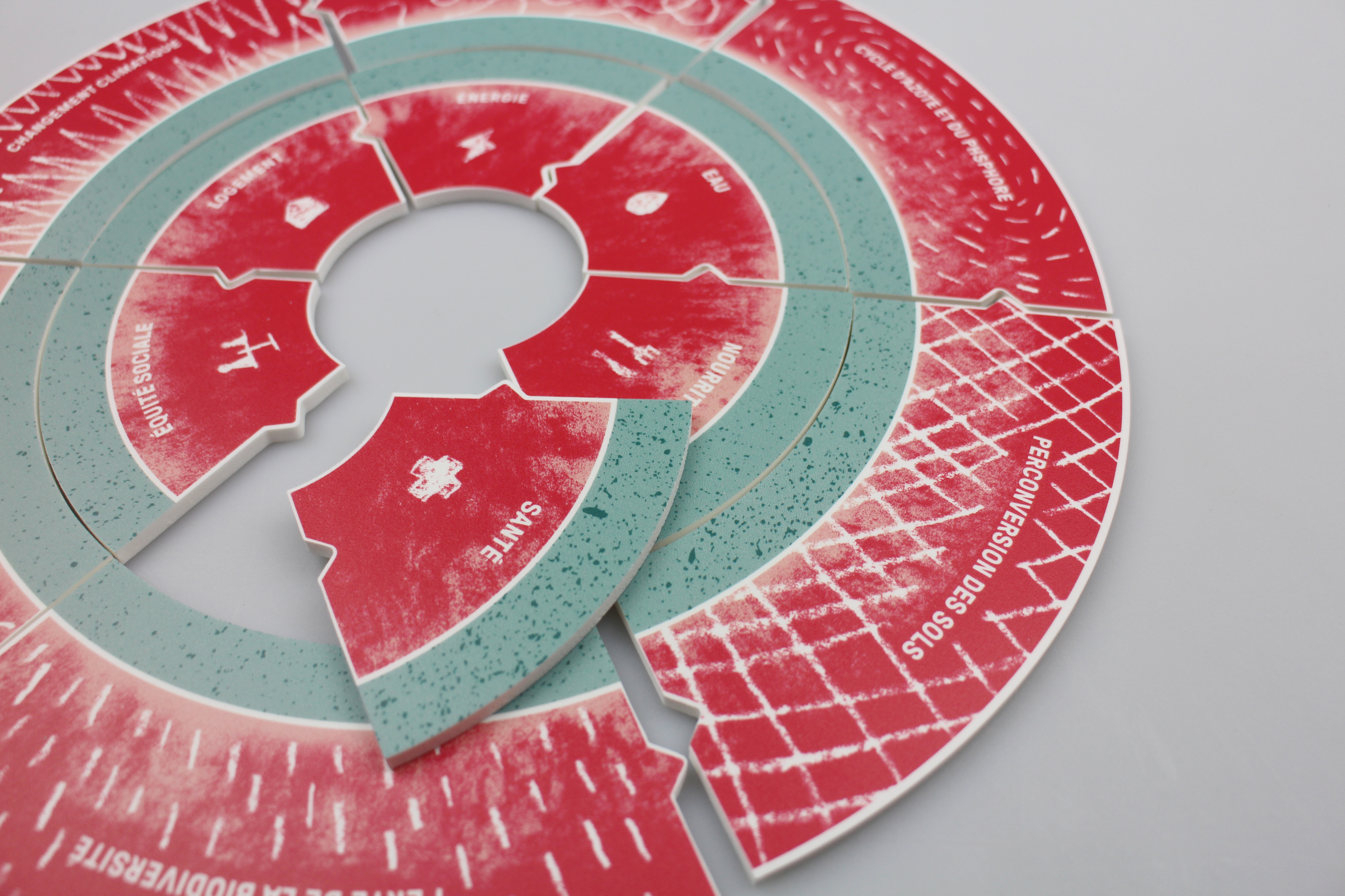 Cet atelier est proposé dans les classes de secondaire pour décourvir la théorie du donut de manière ludique et comprendre comment une vie juste et durable est possible. Sous forme d’enquête et de jeu de piste, le visuel se décline sur des supports variés.